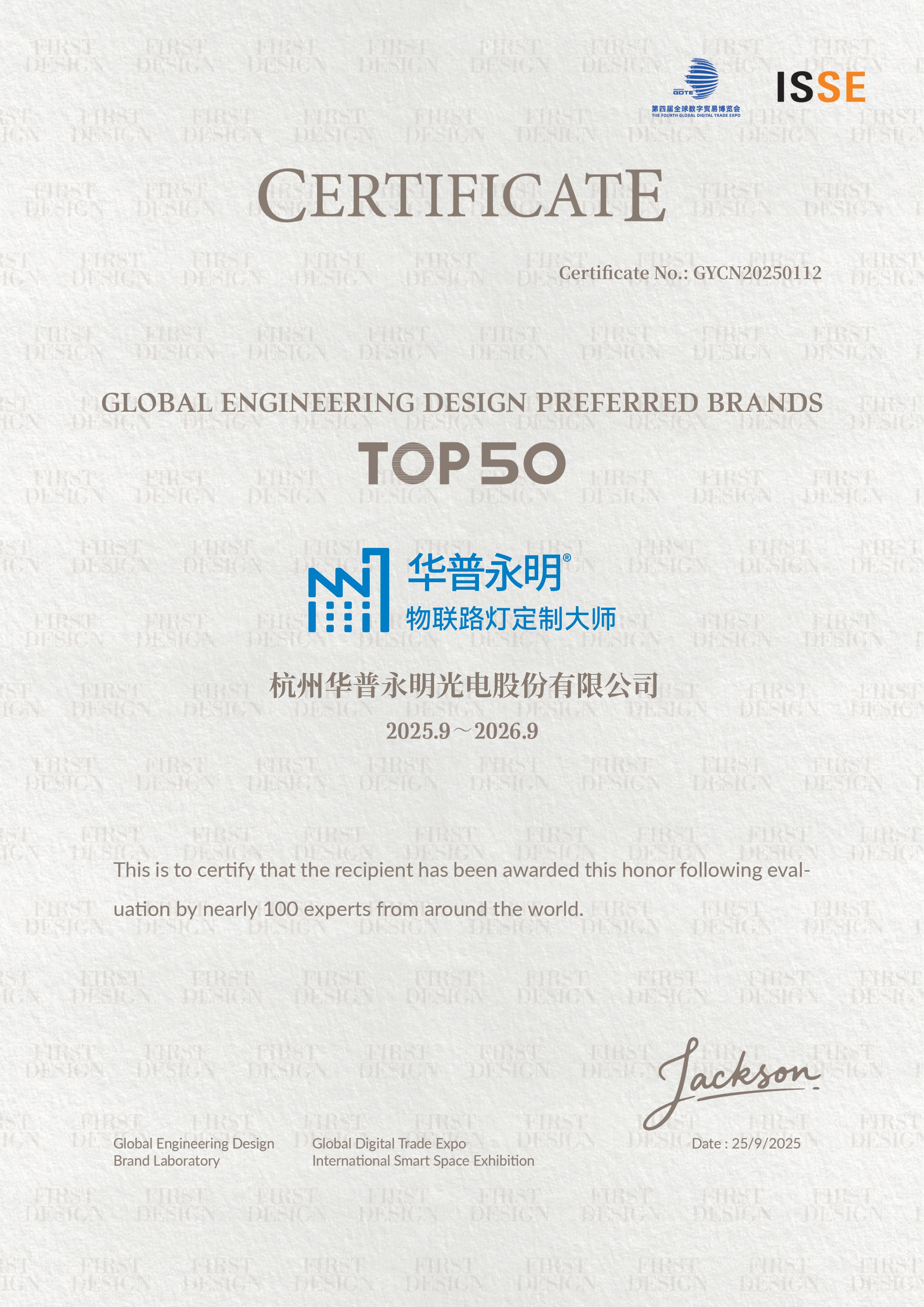 杭州華普永明光電股份有限公司(以下簡稱華普永明)榮耀登榜 "2025全球工程設(shè)計(jì)優(yōu)選品牌 TOP50",充分彰顯其在專業(yè)室外照明領(lǐng)域持續(xù)引領(lǐng)行業(yè)創(chuàng)新的硬核實(shí)力。